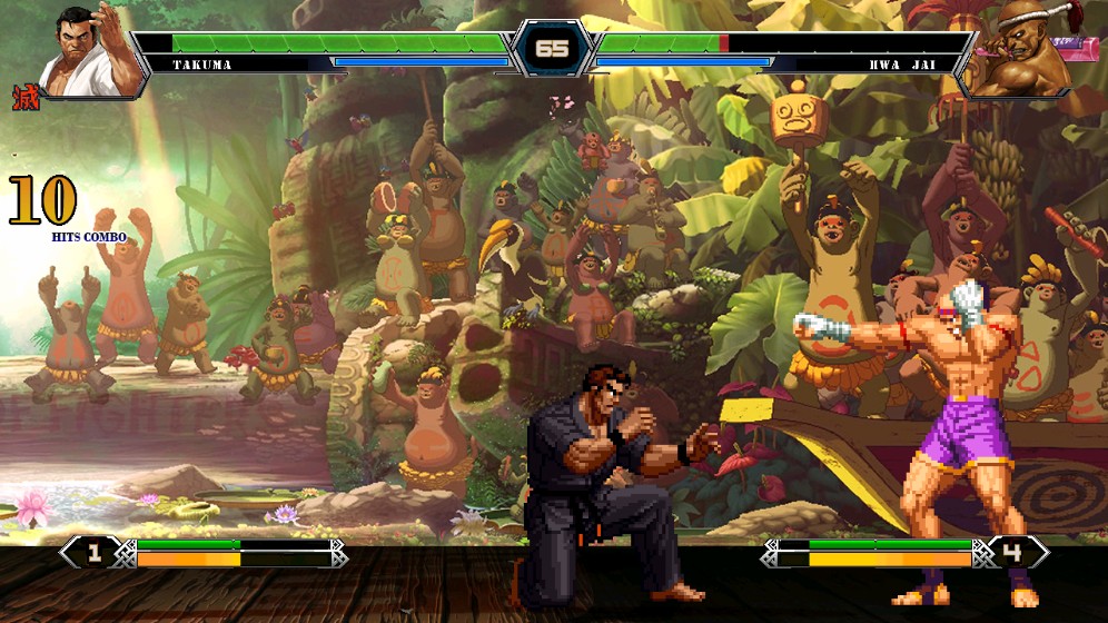 【拳皇13 KOF13 The King of Fighters 13 中文汉化v1.4b版|【0151】 游戏介绍:】《拳皇13》是老牌格斗游戏《拳皇》系列第13代最新作,也是接续《拳皇2003》、《拳皇11》之后的“阿修篇”三部曲完结篇,画面采用高解析度2D图像构成,承袭传统3人组队对战玩法,收录31名参战角色以及“新极限超必杀技”与“超驱动模式”等大幅强化的格斗系统。本作将前作的系统完全更新,导入了EX必杀技,NEO MAX超必杀技等新系统,在手感上更接近传统拳皇系列作品。家用机版本还将追加新角色“比利凯恩”,“空手道先生“,“NESTS风格草薙京”,“未变身版斎祀”以及“取回苍炎的八神庵”。【拳皇13 KOF13 The King of Fighters 13 中文汉化v1.4b版|【0151】 游戏截图:】【拳皇13 KOF13 The King of Fighters 13 中文汉化v1.4b版|【0151】 配置要求:】